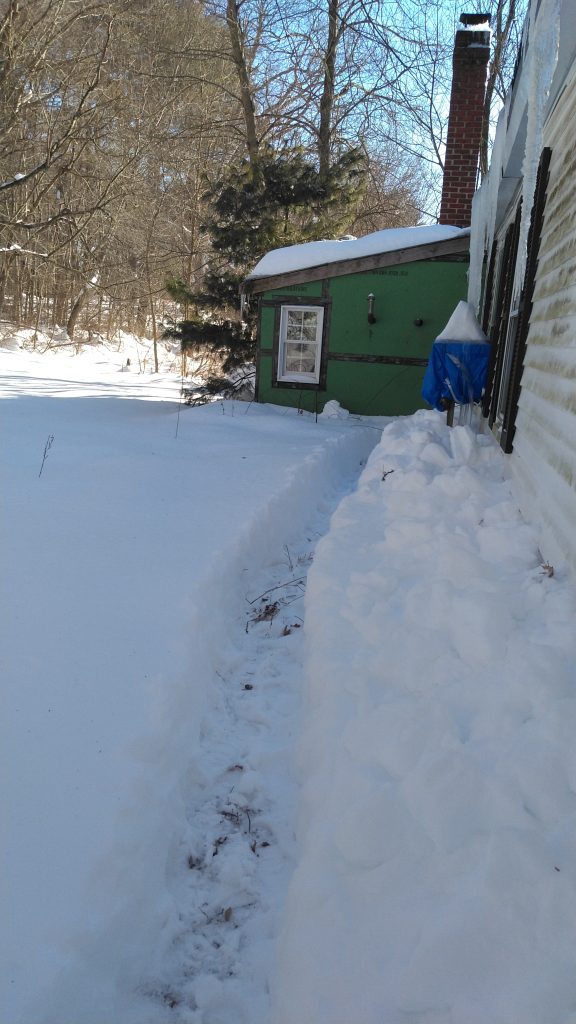 - And of course, the oil delivery person (understandably) needs a path shoveled to the oil tank fill. Which is behind the house. Through the snow drifts.